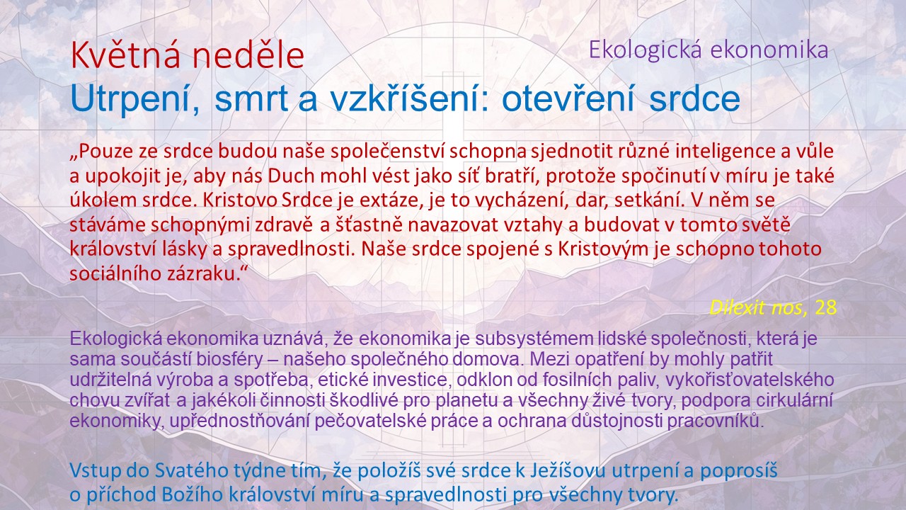 Jak mohou moje rozhodnutí, spojená s Kristovou obětavou láskou, přispět k budování společnosti zakořeněné v péči, spravedlnosti a míru se stvořením i mezi lidmi?